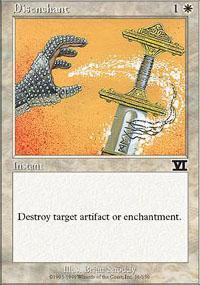 Casting Cost:   Card Type: Instant Card Text: Destroy target artifact or enchantment. Flavor Text: Artist(s): Adam Rex: (Mercadian Masques), Amy Weber: (Alpha, Anthologies, Beta, Fourth Edition, Revised, Time Spiral - Timeshifted, Unlimited), Andrew Goldhawk: (Seventh Edition), Brian Snoddy: (Battle Royale, Fifth Edition, Ice Age, Sixth Edition, Starter 2000), Charles Gillespie: (Mirage), Donato Giancola: (Urza's Saga), L. A. Williams: (Tempest) Rarity: Common: (Alpha, Anthologies, Battle Royale, Beta, Fifth Edition, Fourth Edition, Ice Age, Mercadian Masques, Mirage, Revised, Seventh Edition, Sixth Edition, Starter 2000, Tempest, Unlimited, Urza's Saga), Rare: (Time Spiral - Timeshifted) |