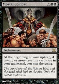 4th- Discard your hand and win on the next round! Magic The Gathering Combo ![]() ![]() ![]() cast m. combat. then cast acc. centaur and sacrifice festering goblin. put a -1/-1 counter on a 1/1 critter. repeat. cycle a lot of creatures so your graveyard builds up. Magic The Gathering Decks Utilizing Mortal CombatThere are currently 14 Mortal Combat decks listed on our site. If you have your own deck that has Mortal Combat in it, we would greatly appreciate it if you would consider Adding Your Deck to our site. Black And Blue ![]() ![]() ![]() ![]() ![]() 60 Cards Value: $73.56 64 cards. a couple of combos dranlu's with draco & morality shift with mortal combat Cycling, 3 Turns ![]() ![]() ![]() ![]() ![]() ![]() ![]() 55 Cards Value: $56.29 get out fluctuator cycle the whole deck then kill! simple, fast, effective. Bite The Dust ![]() ![]() ![]() ![]() ![]() ![]() ![]() 40 Cards Value: $13.26 Mortal Combat Set Specific InfoMortal Combat has now been printed in a total of 2 magic the gathering sets.
