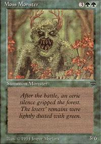 Magic The Gathering Combos Utilizing Moss MonsterWe do not currently have any combos that utilize Moss Monster. If you have your own Moss Monster combo, we would greatly appreciate it if you would consider Adding Your Combo to our site. Magic The Gathering Decks Utilizing Moss MonsterWe do not currently have any decks that use Moss Monster. If you have your own deck that has Moss Monster in it, we would greatly appreciate it if you would consider Adding Your Deck to our site. Moss Monster Set Specific InfoMoss Monster has now been printed in a total of 2 magic the gathering sets.
