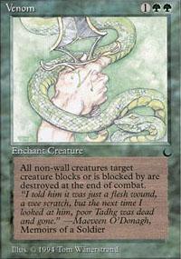 Magic The Gathering Combos Utilizing VenomThere are currently 90 Venom combos listed on our site. If you have your own Venom combo, we would greatly appreciate it if you would consider Adding Your Combo to our site. Magic The Gathering Combo ![]() ![]() creature blocked by sentinel dies at end of combat. sentinel lives cuz its toughness is 1 greater than attacker's power Magic The Gathering Combo ![]() ![]() ![]() ![]() look above for the right way this combo works Magic The Gathering Combo ![]() ![]() ![]() it kills all of their creatures if the anthroplasm is high with power and toughnes. Magic The Gathering Decks Utilizing VenomThere are currently 25 Venom decks listed on our site. If you have your own deck that has Venom in it, we would greatly appreciate it if you would consider Adding Your Deck to our site. Living Elfs The Correct Version ![]() ![]() ![]() ![]() ![]() ![]() ![]() 65 Cards Value: $1598.32 it's a good deck but needs some work. i am open for any suggestions to make it better or for a side board. Elvish Madness ![]() ![]() ![]() ![]() ![]() ![]() ![]() 60 Cards Value: $79.64 bwahahahahahaha!!!!! i am drunken monkey!!!!!!! fear me!!!!!!!! ahhhhh.... so cheap, yet so *much* fun! i just love beating the everliving unholy hell out of everyone i play, don't you? Lure And Destroy ![]() ![]() ![]() ![]() ![]() ![]() ![]() 60 Cards Value: $62.52 thresher destroys land and with lure on him you cant go wrong Venom Set Specific InfoVenom has now been printed in a total of 3 magic the gathering sets.