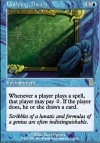 Casting Cost:   Card Type: Enchantment Card Text: : The next time you would draw a card this turn, each player returns a permanent he or she controls to its owner's hand instead. Flavor Text: "Be logical in all things. Do not allow instinct or passion to cloud your mind." —Volume II, The Book of Insight Artist(s): Eric Peterson: (Onslaught) Rarity: Rare: (Onslaught) |